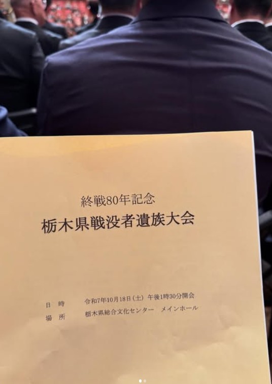 また、「戦後80年 栃木県戦没者遺族大会」に出席し、英霊に対し、改めて深い敬意を表しました。平和の尊さを次の世代へとしっかりと受け継いでまいります。